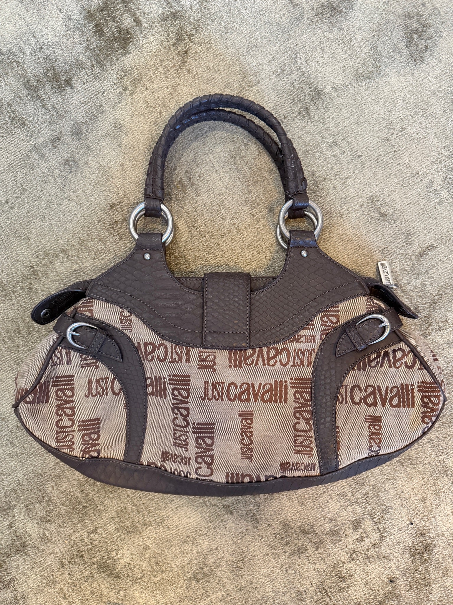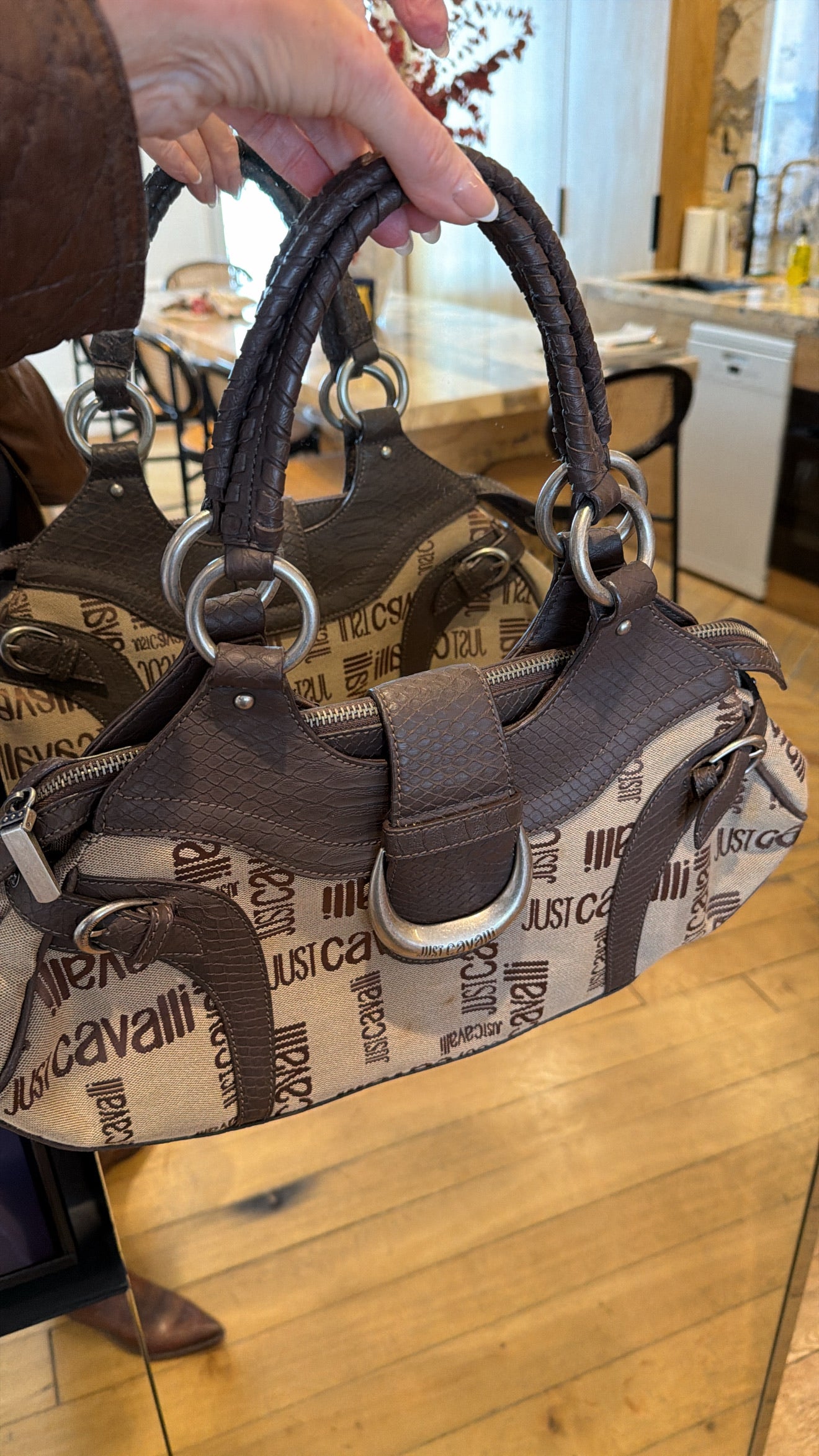 NEW!! Vintage Just Cavalli Brown Leather and Canvas Purse