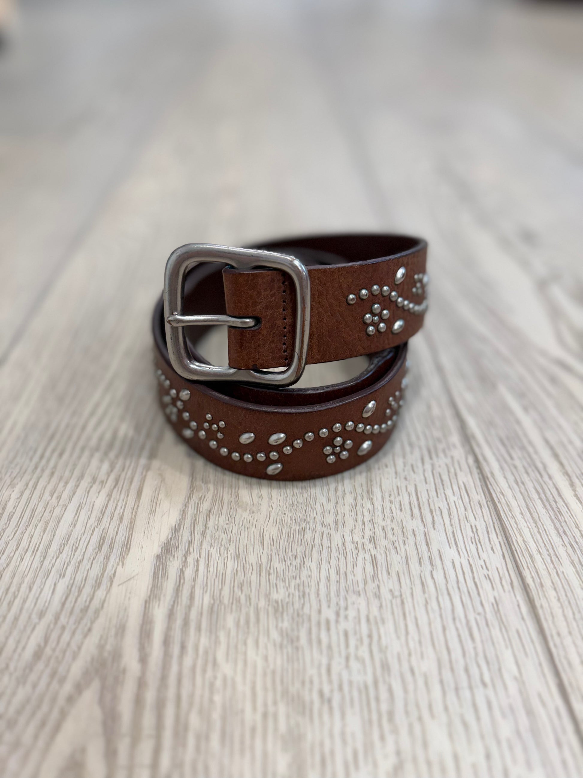 NEW!! Vintage Ralph Lauren Brown W/ Silver Studded Belt Size Medium