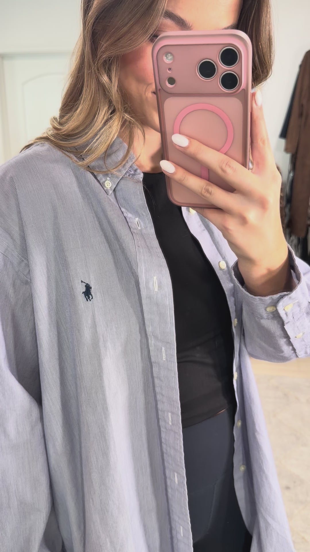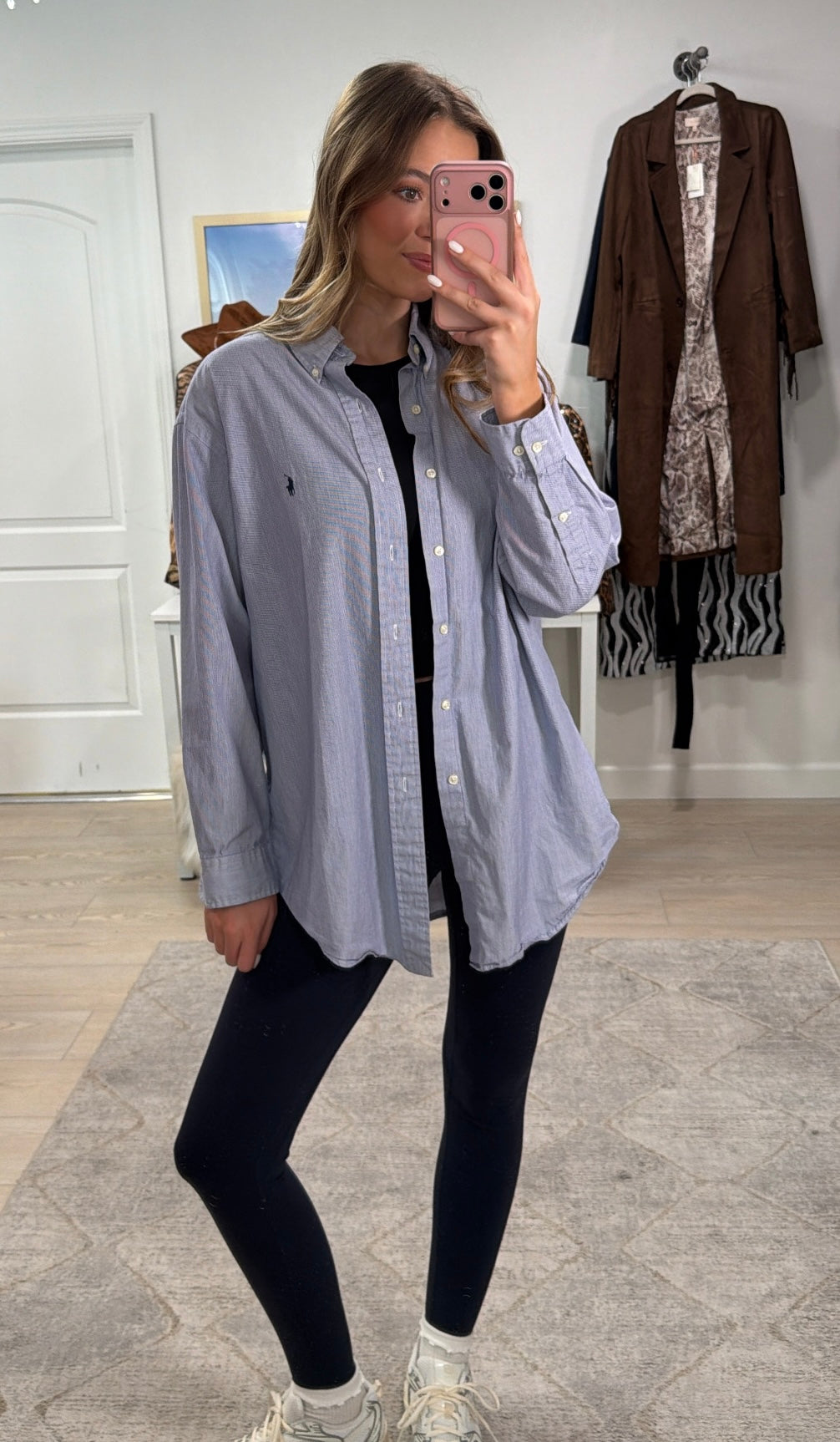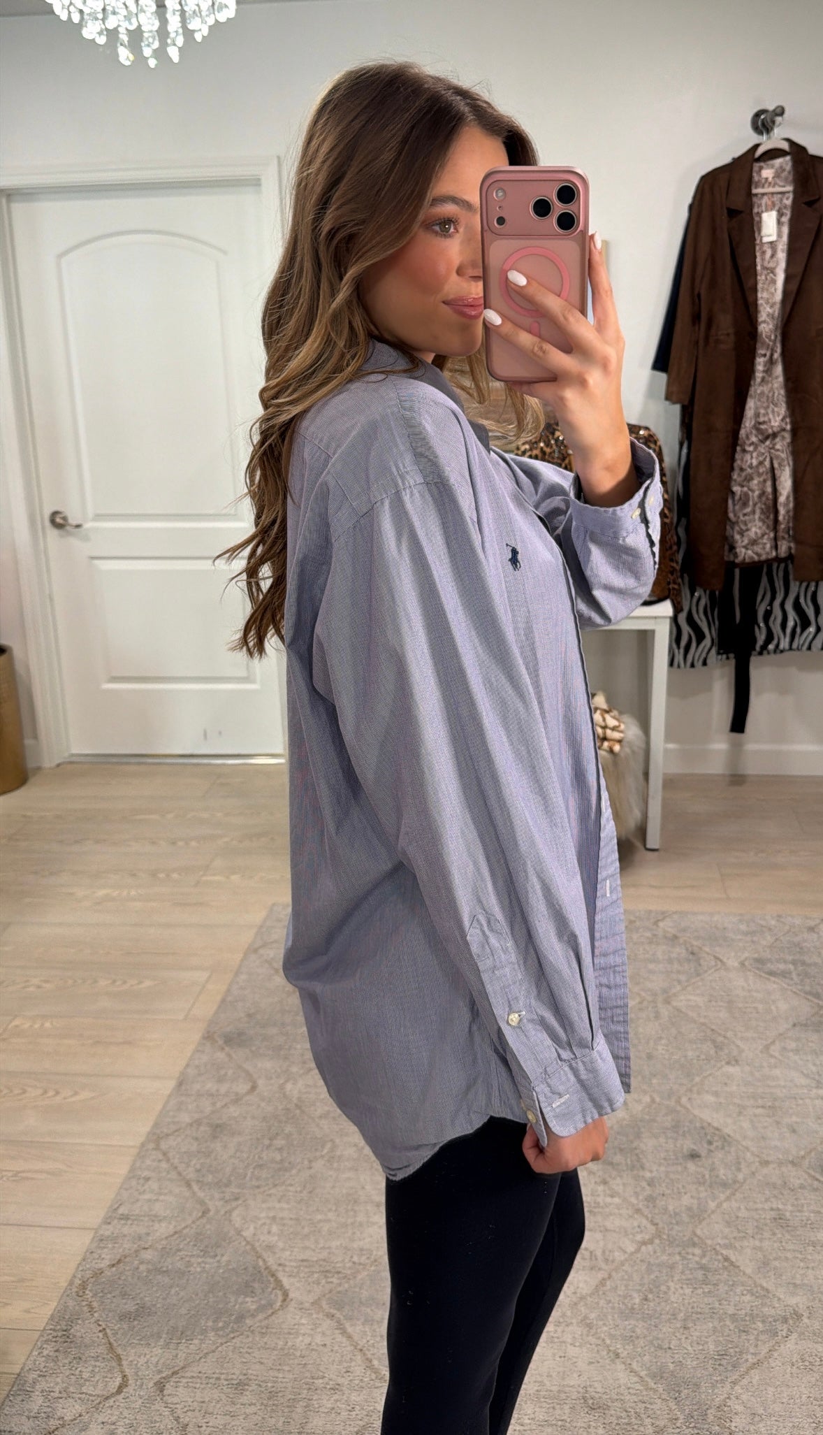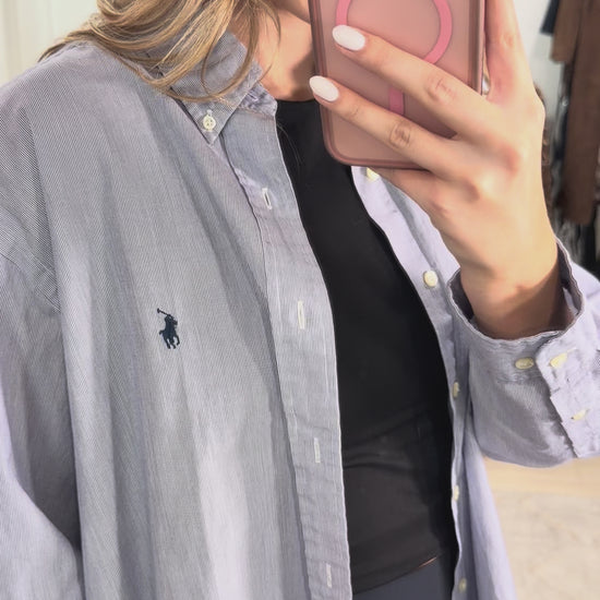 Ladies!! this is the easiest button up to style this summer! Wear it with distressed denim, black denim, tailored black shorts, over your swim suit, and so much more! We love this Vintage Ralph Lauren Button Up!