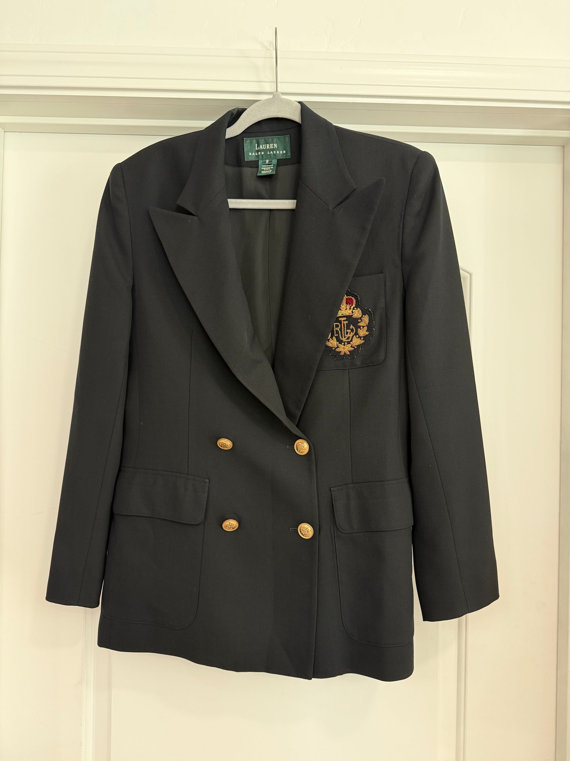 NEW!! Vintage Ralph Lauren Black Crest Blazer Size 8