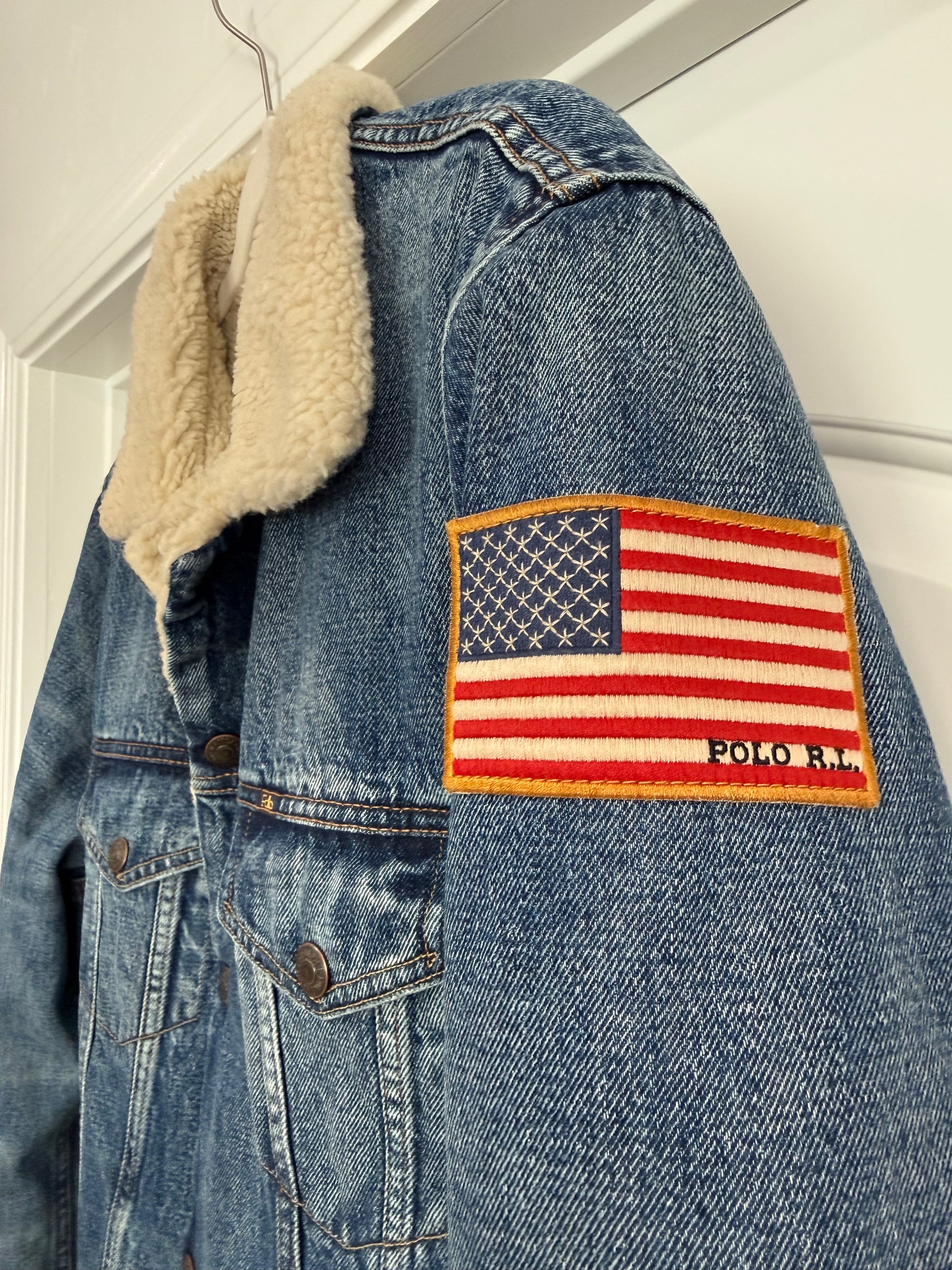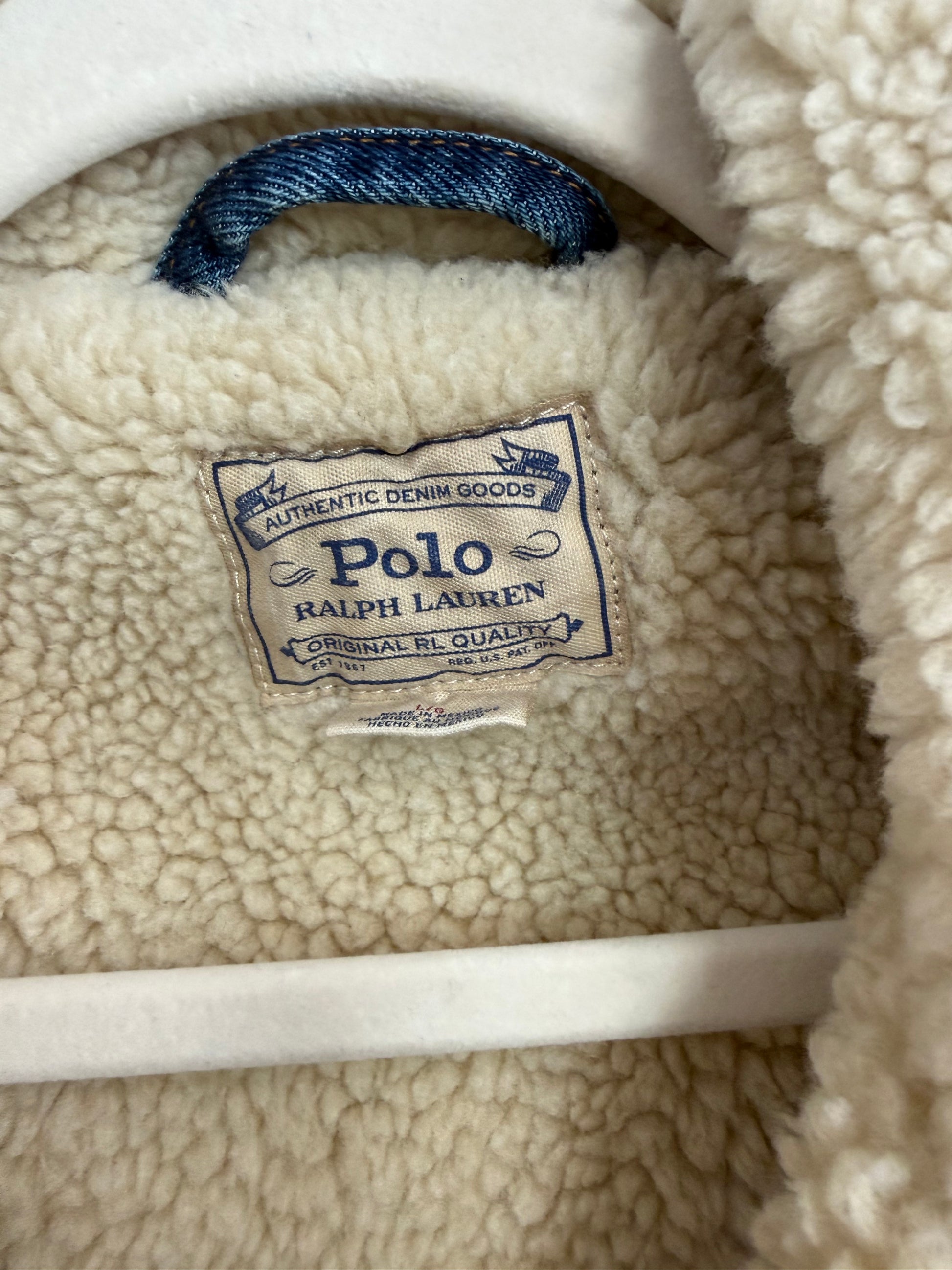 NEW!! Vintage Ralph Lauren Sherpa Denim Jacket Size Large