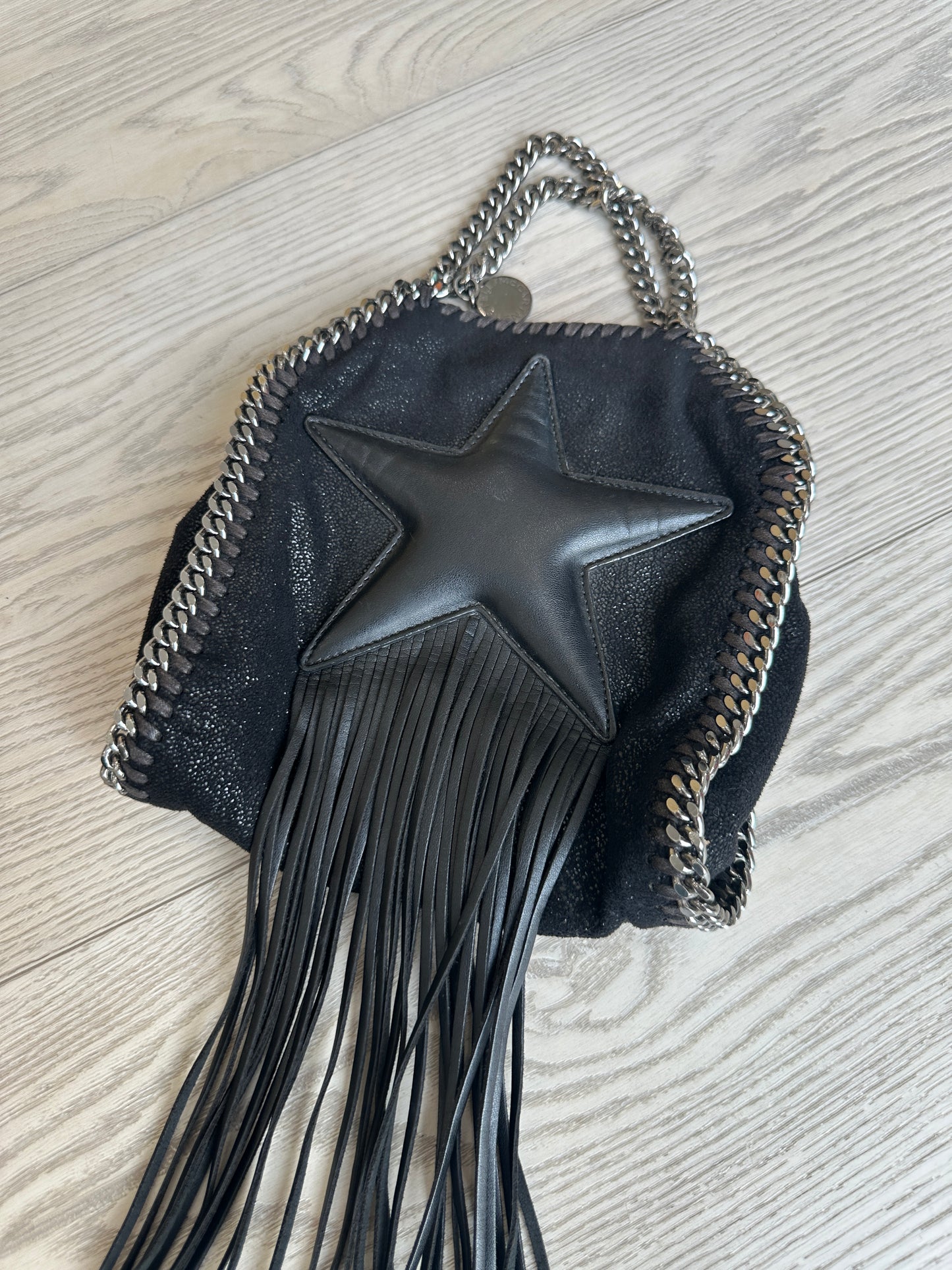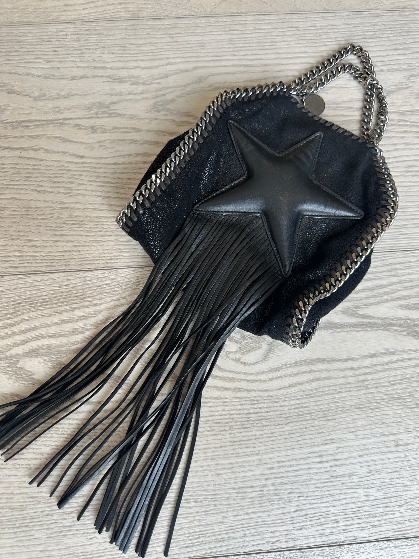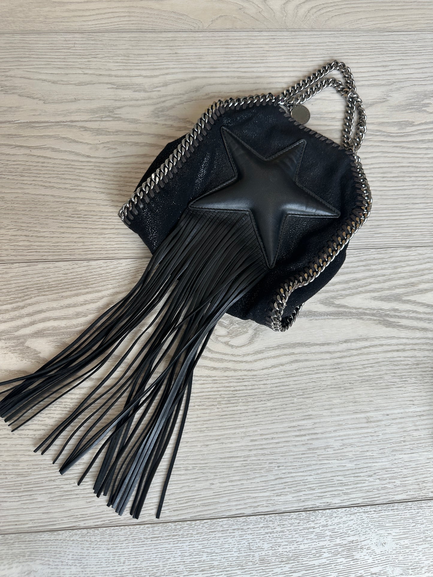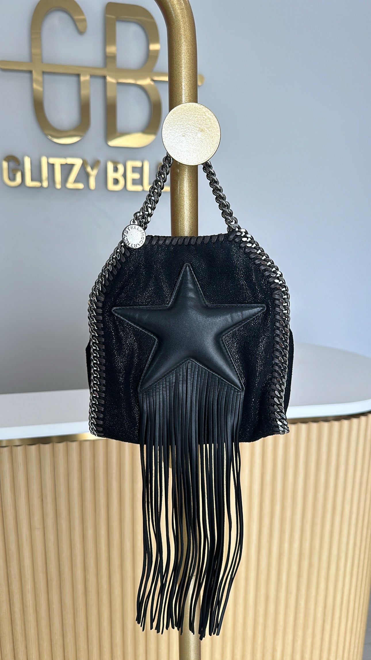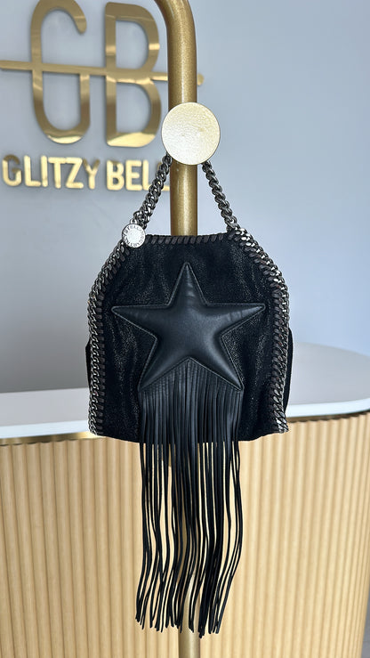 Talk about a statement piece! Perfect for any event, this rare Falabella Fringe Star Mini Tote by Stella McCartney is the statement bag we all need in our closets!