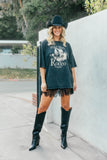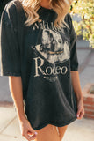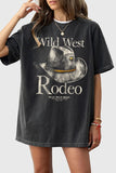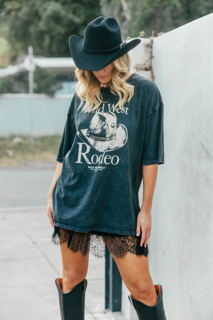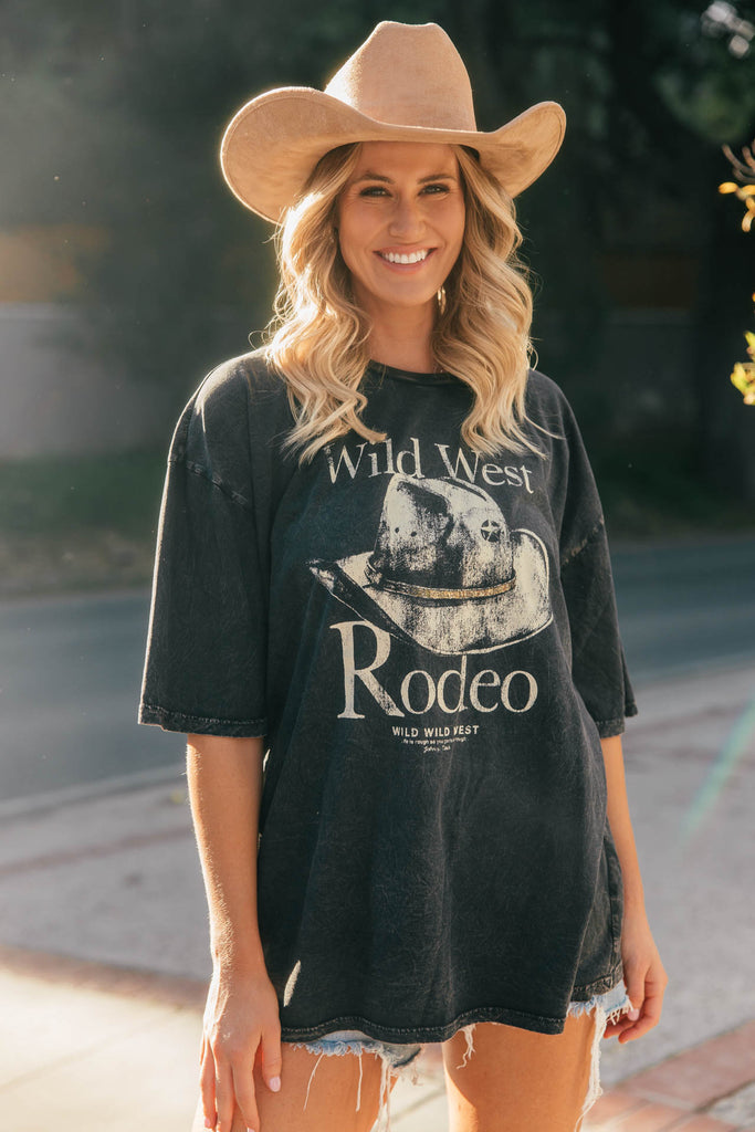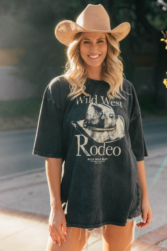 Round up your wardrobe with the Wild West Rodeo Graphic Tee. Made from soft, breathable jersey fabric, this tee boasts a bold front graphic that channels the energy of the rodeo, making it a standout piece for any occasion. The oversized fit adds a trendy twist, perfectly pairing with high-waisted denim shorts or flowy skirts for an effortlessly chic look.