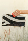 Made of genuine hair on hide, this clutch is a statement piece in itself! Made by hand in California, artisans craft leather and cowhide into a chic accessory to hold your favorite belongings. Inn pouch and zipper keeps your things organized. Comes with a detachable leather shoulder strap.