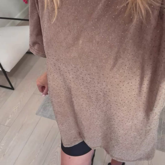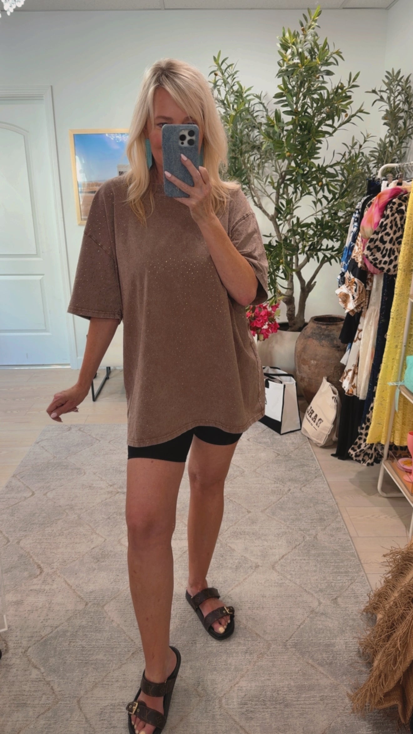 NEW!! "Brooklyn" Acid Wash Rhinestone Tee in Brown
