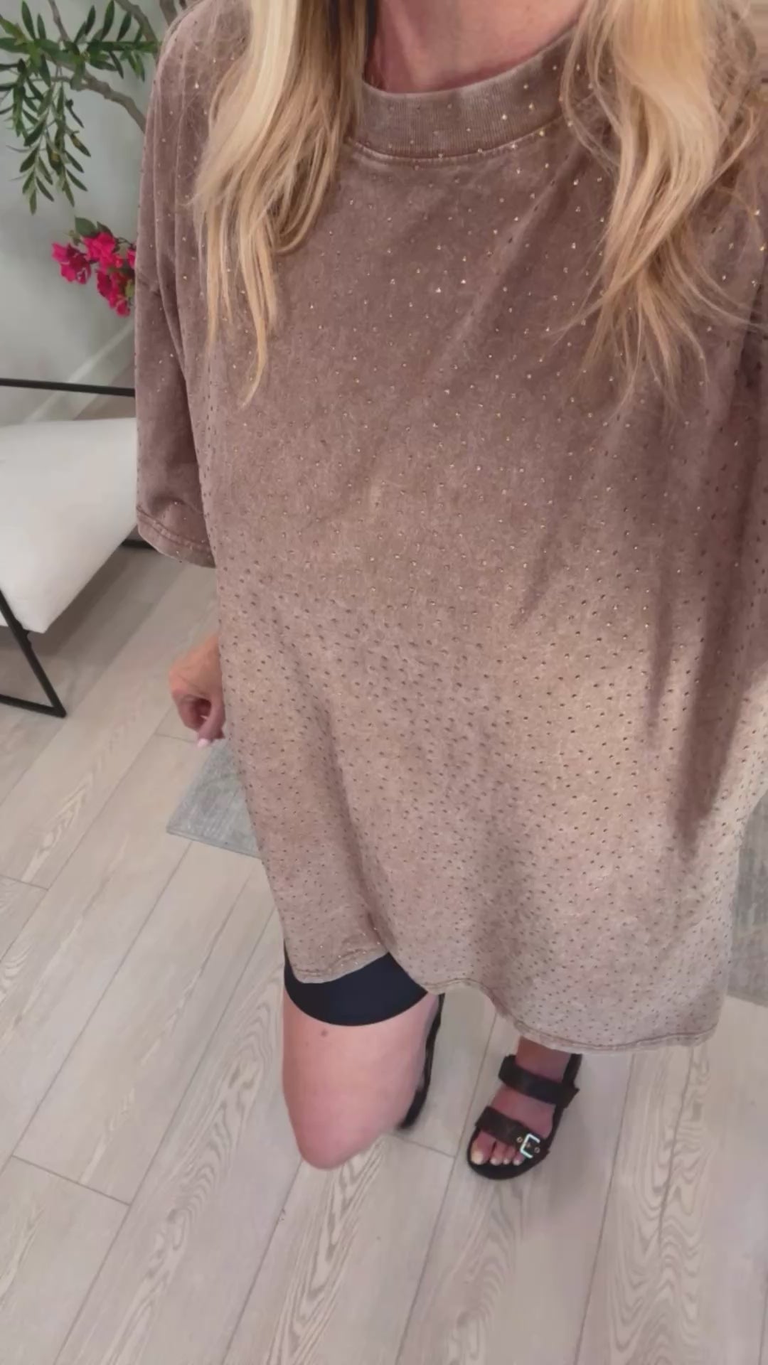 Talk about a tee that scream GB!! Our new "Brooklyn" Acid Wash Tee will become our go-to this year! Made from soft cotton, this tee has fabulous hotfix rhinestone embellishments all throughout! With its oversized fit, this tee is so cute styled tucked in with light wash denim, or with biker shorts!