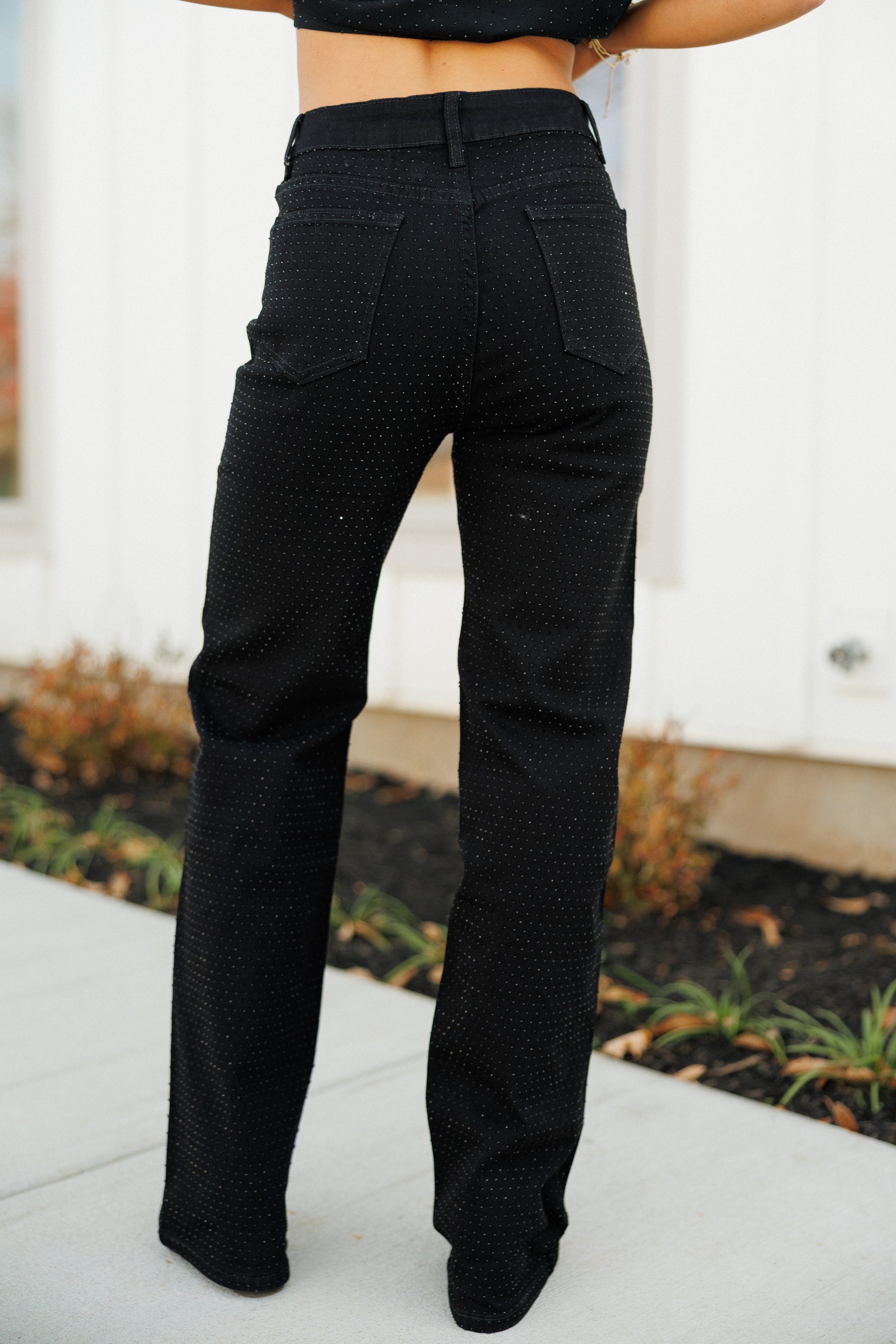 You'll want to add the Iconic Jeans to your denim rotation! This flattering straight leg jean is easy to wear all year 'round. Featuring a relaxed fit and an embellished black denim wash, it's a great everyday jean that can easily be dressed up or down. Add a tucked in tee and chunky kicks or pair with a cute crop and heeled sandals for a polished finish.